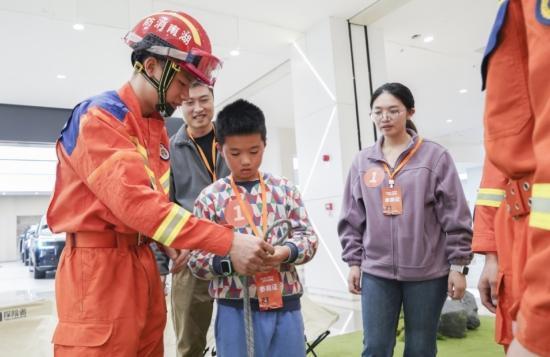 消防员手把手教小朋友打“逃生绳结”。受访单位供图近日,一场以“全民消防、生命至上——安全用火用电”为主题的“119”消防宣传月趣味定向赛活动在长沙高新区火热举行。活动由长沙高新技术产业开发区消防救援大队主办,联动长沙消防抖音号同步开展线上直播,将消防安全知识融入十大趣味闯关项目,以家庭、朋友圈为参赛单位的“战友团”协同“闯关打怪”,实现线上线下双向互动,让市民在沉浸式体验中掌握实用消防技能。
