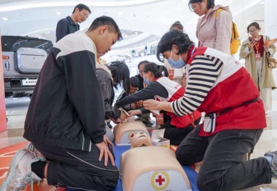 各参赛队员在专业指导下学习心肺复苏。受访单位供图